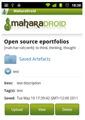 MaharaDroid enables Android phones to share or upload content to a Mahara E-Portfolio instance. The app can be used by the learners in the field to upload either pre-existing content like photos, files, videos on their phones or to make use of the features like camera and video in their phone to take and upload new content on their portfolio account. With new Phones offering features like geo tagging of pictures and videos this evidence can be used in field based courses as evidence of the content gathering at particular location.