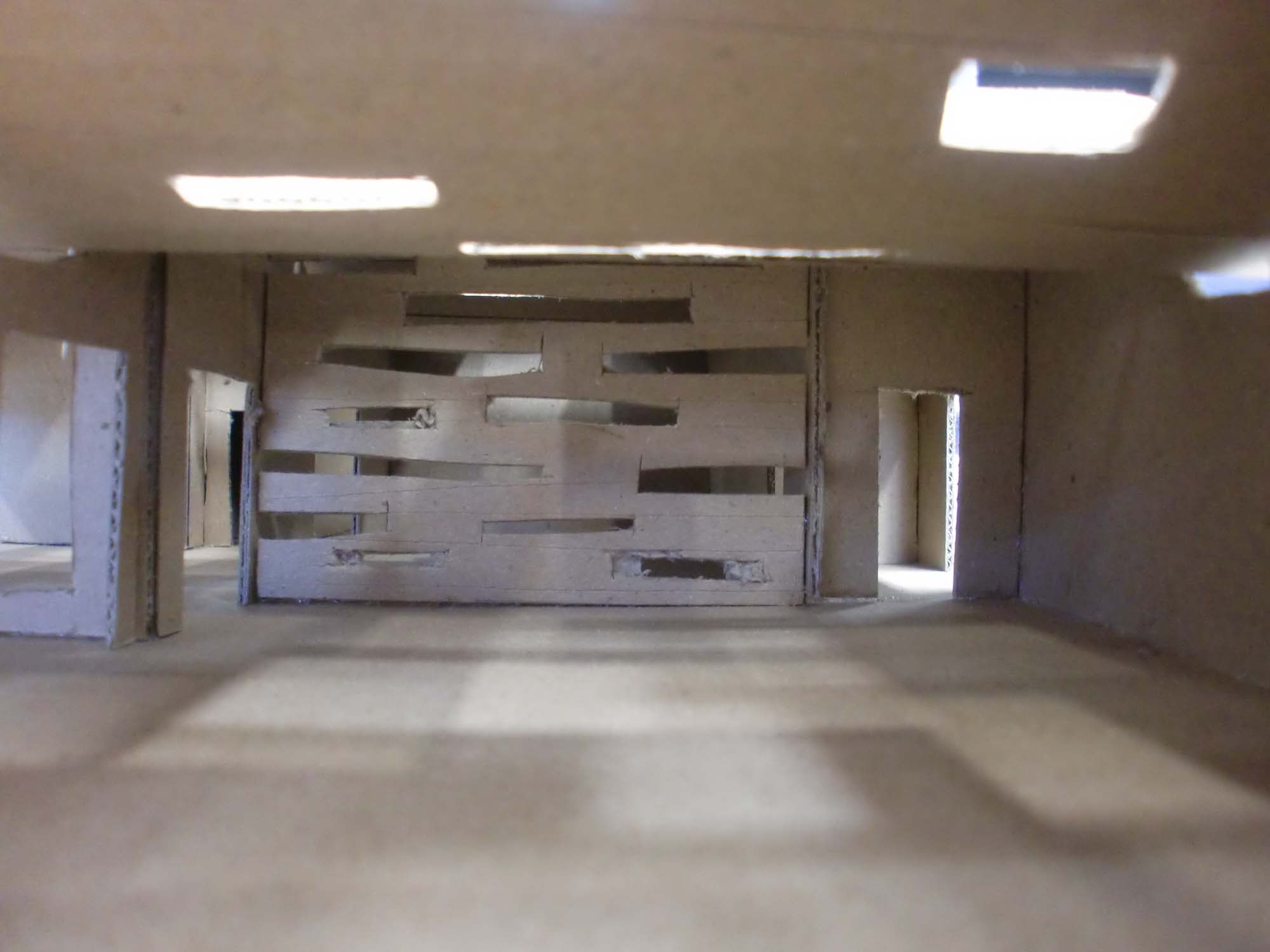 As time went on, my ideas started to become more clear. I decided that the shape of the river would make an interesting roof. Also I would like to have a wall with slits in it in front of glass to let light through to represent light reflecting off water would be quite atmospheric. These are the ideas I have come up with for my community centre.