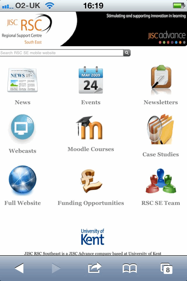 Over 7.1 million UK users now access the internet with their mobile phones, forcing many organisations to explore ways of creating an online presence for mobile and smartphone users. In response, i managed the project in which the JISC RSC South East has launched a tailored version of its website optimised for such equipment. Now you can access all the news, events, Excellence Gateway case studies, funding bulletins, mobile webcasts and Moodle courses published on our regular website using your favourite mobile device.